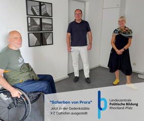 Unser Foto zeigt von links nach rechts: Markus Georg Reintgen (Künstler), Bernhard Kukatzki (Direktor der Landeszentrale für politische Bildung Rheinland-Pfalz), Dr. Ariane Fellbach-Stein (MFFKI)