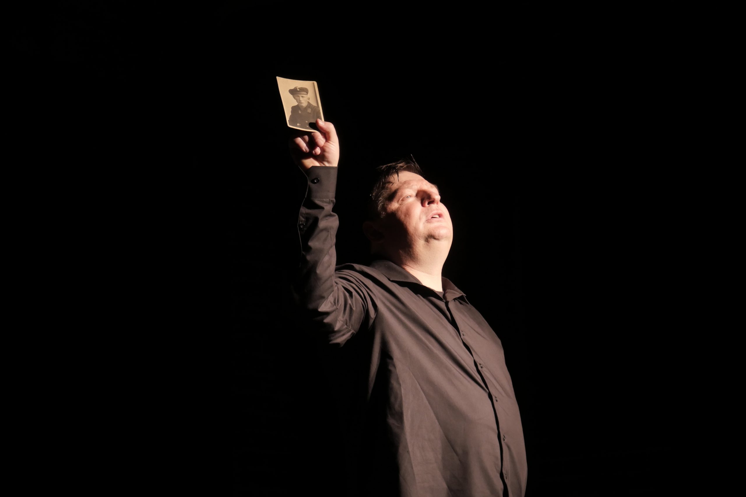 In einem sehr persönlichen Erzähltheater spricht der Autor in einfühlsamen Monologen mit seinem verstorbenen Großvater Anton Knödler, der als Häftling in Buchenwald inhaftiert war. Er spricht über das Familiengeheimnis, die Scham und die Zeit in Buchenwald. Ausgehend von den Monologen schlüpft Harald Hahn in die Rolle eines SS-Mannes und verwandelt sich zurück in das Kind, das er einst war. Ein schwäbischer Hausmeister kommentiert das Geschehen und schafft so die Verbindung zwischen Geschichte, Schauspieler und vermeintlich unbeteiligten Zuschauer*innen. Denn die aufgeworfenen Fragen verweigern sich dem rein passiven Konsum – sie wollen und sollen alle Anwesenden mit einbeziehen.